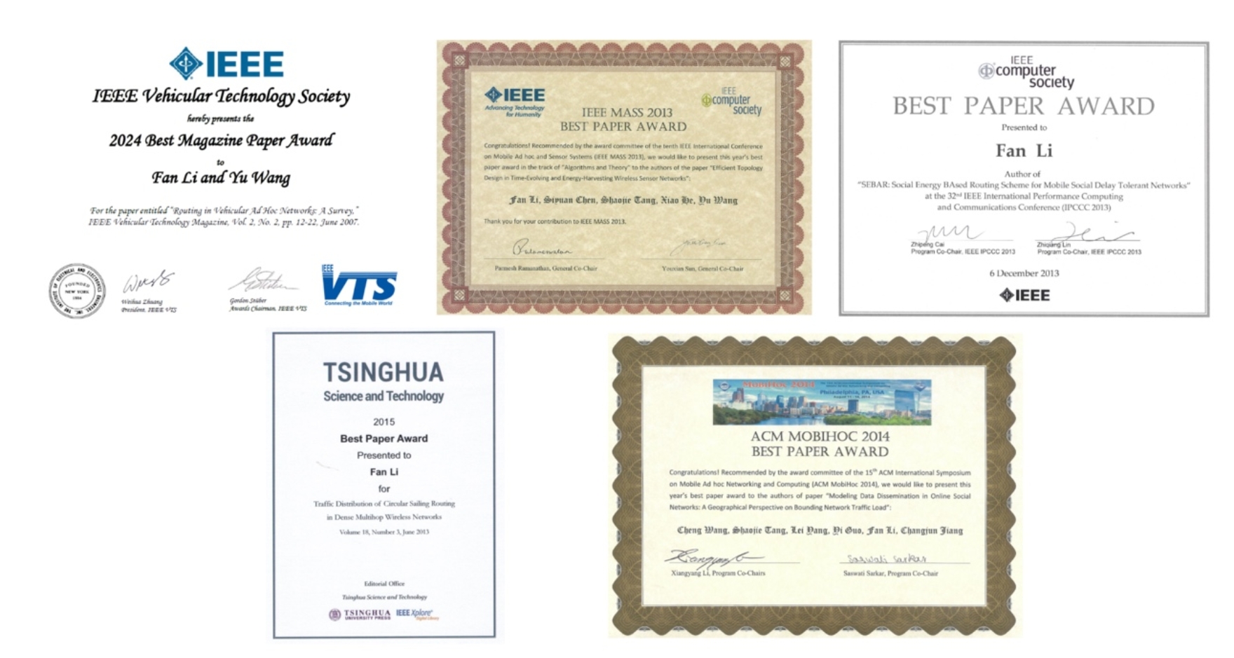研究所李凡老师曾荣获多个国际学术期刊或会议的最佳论文奖,包括: