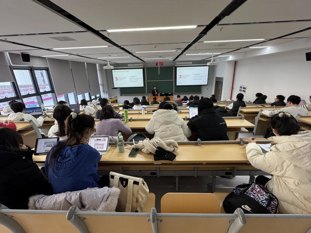 郎佳高为同学们带来了题为“保持热爱 奔赴山海-在成长中遇见更好的自己”报告分享。郎佳高以自己的职业发展路径为例,向学弟学妹分享了个人丰富的职业经历和成长感悟。在谈到成功时,他提到了战略性思维、影响力、组织智慧、冲突管理、全球视野等多个关键因素,鼓励同学们在职业发展中,不仅要注重结果,更要关注过程,不断实现自我成就。