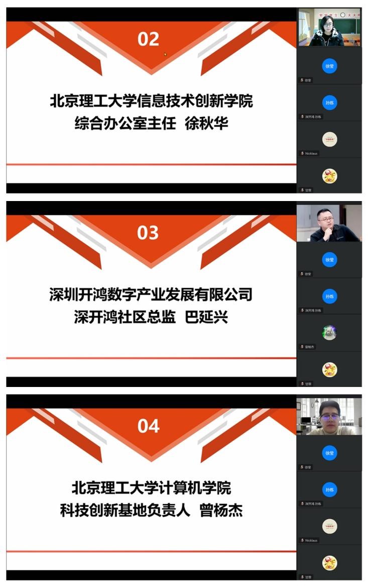 2023年1月15日下午,beat365正版唯一入口必一2024寒假OpenHarmony科创特训营开幕。本次特训营为期一周,由beat365正版唯一入口必一、信息技术创新学院与中软国际、深圳开鸿数字产业发展有限公司联合开展,beat365正版唯一入口必一信息技术创新学院院长吴长高、综合办公室主任徐秋华、深圳开鸿数字产业发展有限公司深开鸿社区总监巴延兴、信创学院老师和深开鸿技术专家出席开营仪式,来自beat365正版唯一入口必一本科生和研究生、OpenHarmony技术俱乐部、开源社团、开源鸿蒙英才班等97名优秀学生参加开幕式。本次开幕式beat365正版唯一入口必一曾杨杰主持。