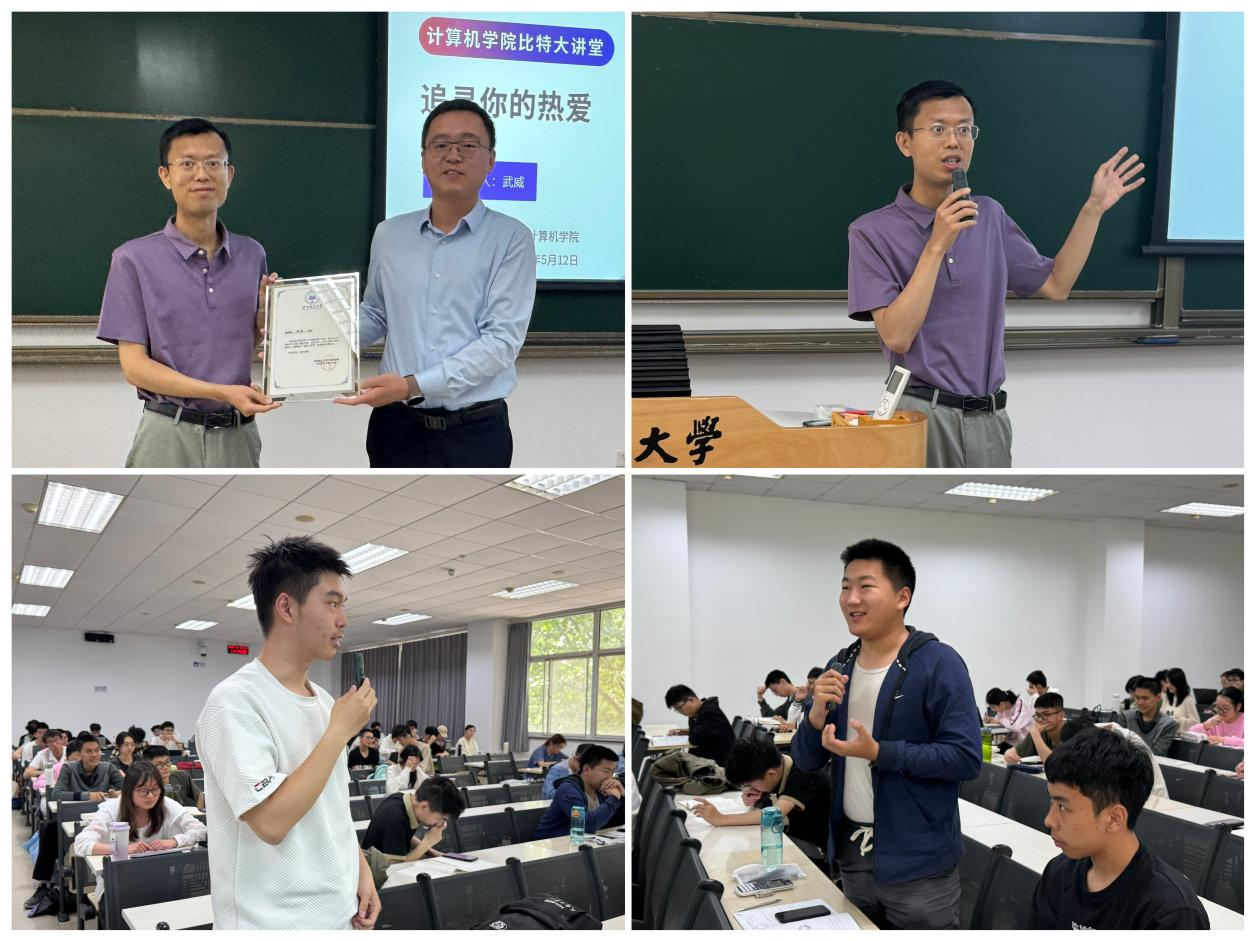 在互动交流环节,针对同学们关心的学业规划与职业发展问题,武威校友提出实用建议。他强调,密切关注行业前沿动态的同时,更要夯实基础学科知识,秉持“越是基础越重要”的学习理念,为未来发展筑牢根基。活动最后,包成刚向同学们详细介绍了本年度学院精心策划的 “比特 +” 系列活动计划,并鼓励在场学子以优秀校友为榜样,科学规划职业发展道路,努力成长为计算机领域的领军人才。