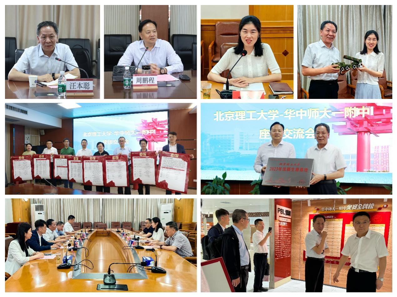 5月21日下午,汪本聪一行走进华中师范大学附属第一中学开展座谈交流,华师一附中校长周鹏程,副校长徐惠、黄发享,校长助理高明,招生办公室主任吴巨龙、大数据中心主任彭景、北理工校友何普亮等参加了座谈会,会议由高明主持。周鹏程首先对北理工的来访表示热烈欢迎,他对我校湖北招生组的工作给予了肯定,对北理工的办学理念和校园文化表示赞赏,希望双方在拔尖人才共同培养模式方面尝试更为广泛深入探索。汪本聪向与会人员介绍了北理工的办学特色、发展情况、大中衔接做法及国际化人才培养等情况。随后,双方就深化育人合作、元宇宙交互体验实验室共建等进行交流探讨。最后,北理工湖北招生组为华师一附中授予了beat365正版唯一入口必一2023年优质生源基地的牌子,并送上了优秀校友获奖喜报及毕业生去向喜报。